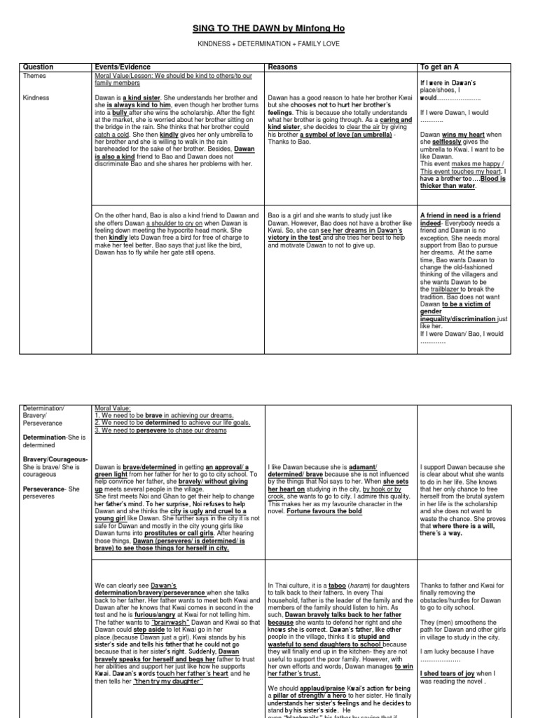 Experts leave their bids under the posted order waiting for a Moral Value Sing To The Dawn Essay client to settle on which writer among those who left their bids they want to choose. Moral Values Compassion and kindness It is compassion that makes Dawan feel uncomfortable about accepting the scholarship as her brother is very keen to study too. View GUIDE TO ANSWER NOVELpdf from AB 123 at University of Science Malaysia.